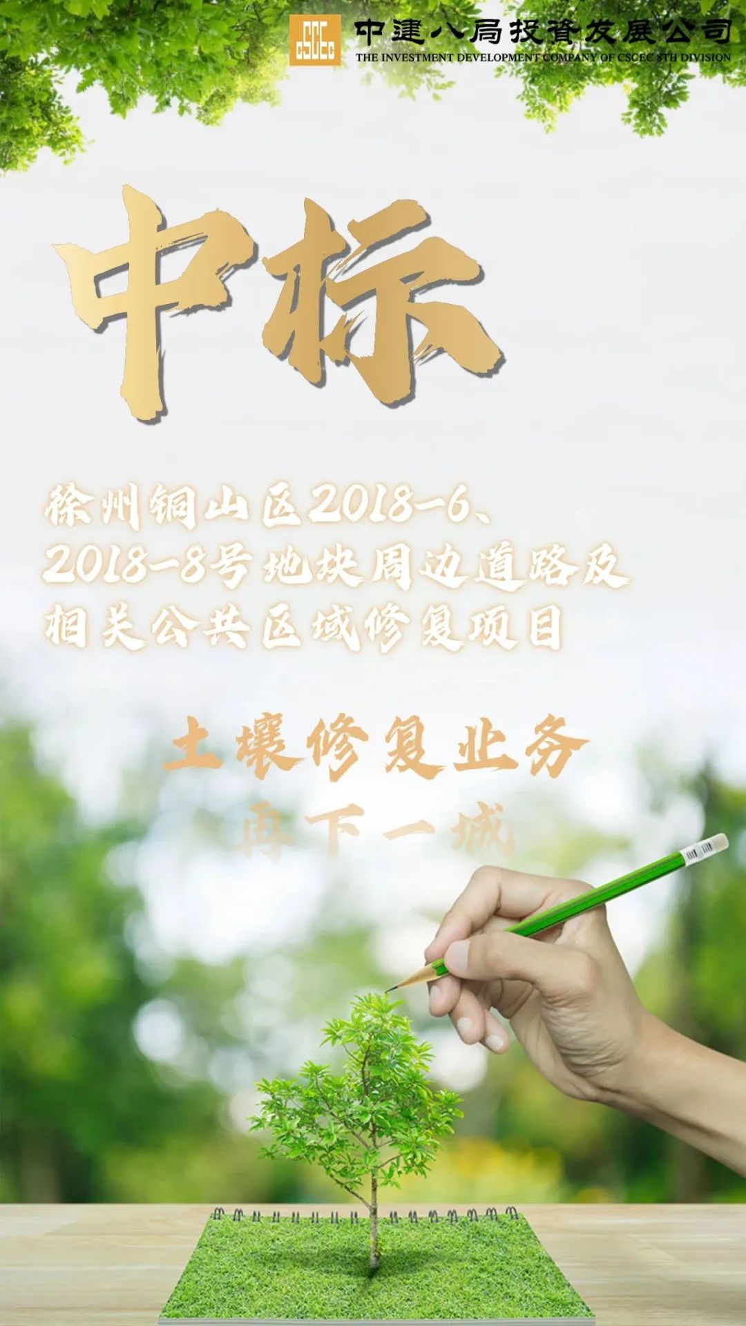 近日,中建八局環保科技有限公司成功中標,徐州銅山區2018-6、2018-8號地塊周邊道路及相關公共區域修復項目,在持續拓展公司土壤修復業務征程上再下一城。
