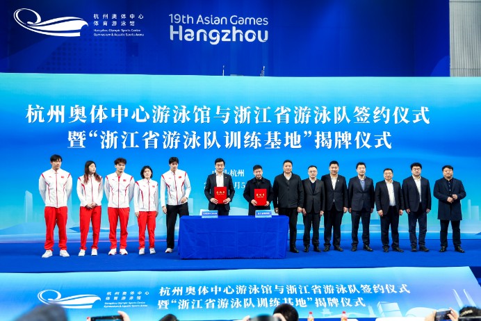 韓趙炎在現(xiàn)場致辭中強調(diào),此次簽約揭牌,既是錢江世紀城總結(jié)杭州亞運會好經(jīng)驗、好做法,乘勢而上做深做實“后亞運”文章的重要內(nèi)容,也是錨定“打造一流賽會核心區(qū)”戰(zhàn)略目標,加快實現(xiàn)以館興產(chǎn)惠民的重要舉措。希望本次簽約合作能夠?qū)崿F(xiàn)專業(yè)場館和專業(yè)隊伍的強強聯(lián)手、雙向賦能,助力奧體中心游泳館成為一流專業(yè)隊伍訓練基地,為浙江游泳天團創(chuàng)造更佳戰(zhàn)績、續(xù)寫更大輝煌提供強有力的支持。 此次雙方合作將進一步優(yōu)化資源配置、拓寬發(fā)展空間、增強核心競爭力,提升在浙江省內(nèi)乃至全國的綜合實力和影響力。