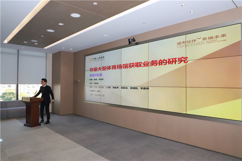 公司黨委副書記、總經(jīng)理王炳民,黨委副書記、紀(jì)委書記、工會主席胡曉華,助理總經(jīng)理、創(chuàng)投事業(yè)部黨支部書記范新海,運營公司黨總支書記李岳存等公司領(lǐng)導(dǎo)出席活動。黨群工作部經(jīng)理王淅主持。3個課題組將按照順序依次上臺對本小組的研究課題進行匯報,匯報考評滿分為100分,分為匯報材料、組織實施、創(chuàng)新亮點、匯報能力、研究內(nèi)容、可落地性6個考評項,由評委團隊(除自己小組帶隊導(dǎo)師以外的)評分,最終根據(jù)評委團的平均分進行優(yōu)勝小組裁定。